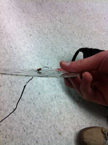 4. Inserte el LED a través del orificio en el CD que ha perforado en la sección anterior y enrosque el cable recién adjunto a través del agujero del centro del CD.