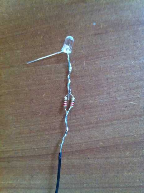2. Envuelva un extremo en el extremo suelto del par de resistencia en el par de resistencia de LED.