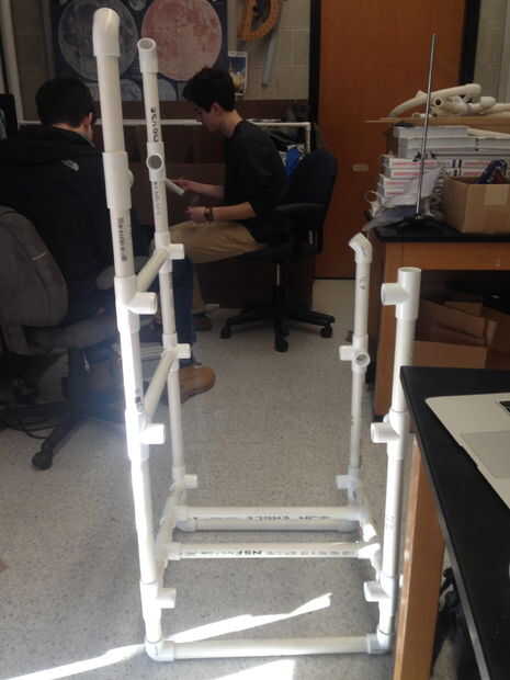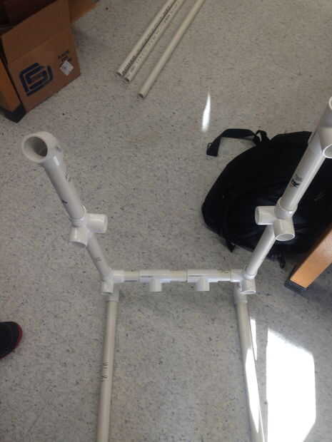 Ate tres 3,75 en PVC tubería piezas utilizando dos tee juntas, repetir una vez más. Ahora conectar el frente de las Asambleas de sub y la parte posterior de las Asambleas de sub con estas piezas. A continuación, dos en 18 PVC tubería piezas para conectar estos juntos en el diseño.