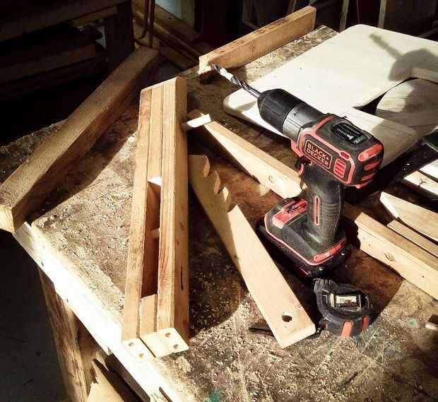 Perfore los orificios para taquetes agregar el pegamento, inserte las clavijas, coloque piezas juntos y apretados con tornillos.