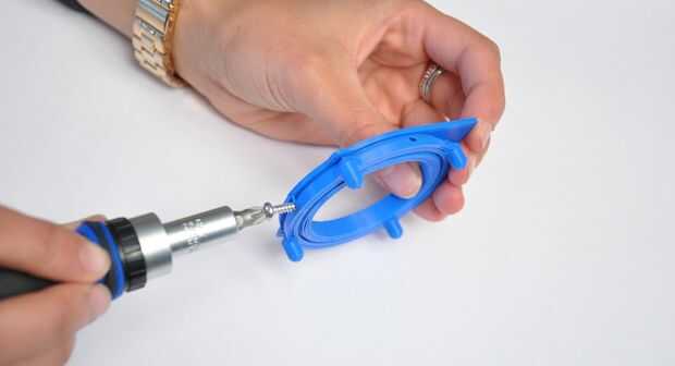 Cuando el pegamento ha fijado, inserte un tornillo en uno de los orificios de tornillo fijación (donde se podrá acceder cuando en la silla) autorroscante y apriete hasta que el anillo superior ya no se moverá.