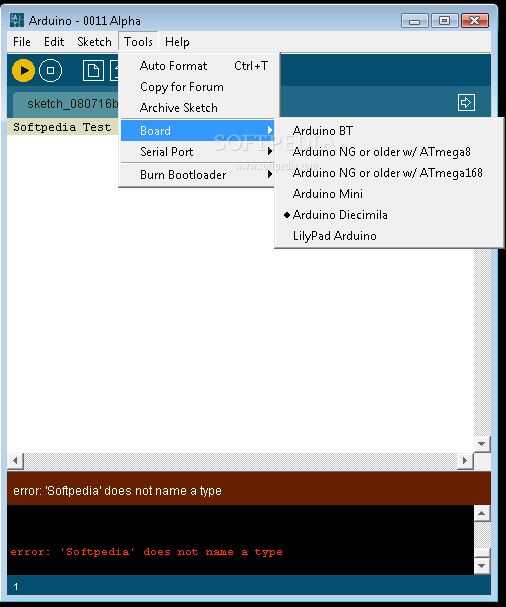 Una vez que tienes el software Arduino, y reconoce el hardware de Arduino (que está conectado a puerto USB de su ordenador) necesita cargar el sketch que hemos escrito usando el menú archivo. Luego ir al menú herramientas y seleccione "Placa" y elegir el modelo de Arduino tienes. La Diecimila, Duemilanove o Uno son muy similares y cualquiera de ellos podría funcionar para esta aplicación. A continuación, en el menú herramientas, asegúrese de que está seleccionado el puerto Serial de tu Arduino.