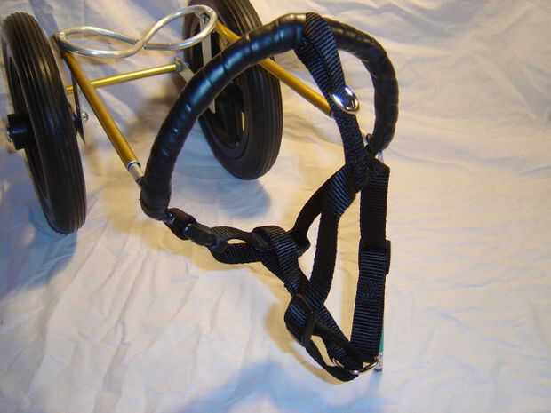 nuestro dachshund lastimar su espalda, por lo que para la rehabilitación hicimos que nadar mucho y construí esta silla hasta que él podría utilizar sus patas traseras otra vez.