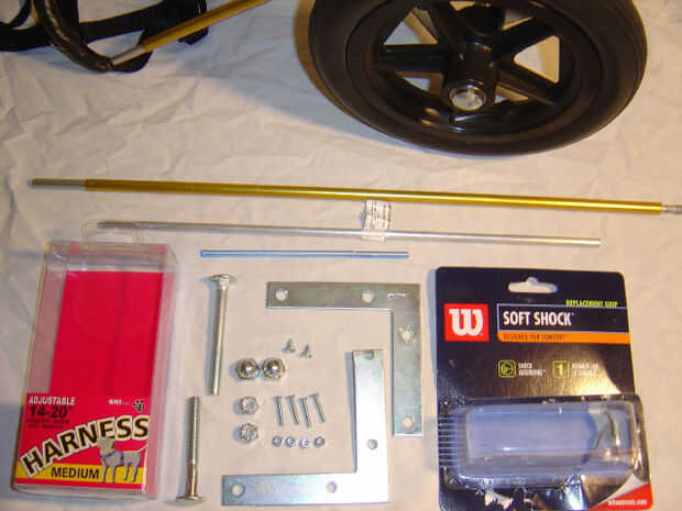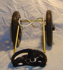 Este gadget es para mover una silla de ruedas en el lugar con fines de acondicionamiento físico. Consiste en 2 rodillos de tubos que llevan la silla de ruedas, una cadena y una rueda volante que se extiende el movimiento del usuario. Para ingresar o