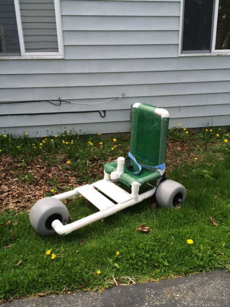 Como el papá de un niño con parálisis cerebral, sé que el equipo es caro. Estaba precios de sillas de ruedas para utilizar en la playa, y eran más de un $1000. Busqué imágenes en la red y decidió que mía era posible y más barato. Este es mi diseño, modificado fácilmente para adaptarse a la persona individual.