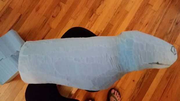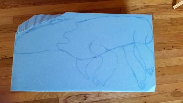 Encontrar material de referencia es clave al realizar cualquier tipo de carácter. Así encontrará algunos materiales de referencia ya sea en cuadros o figuras 3d. He usado ambos. Entonces agarra el bloque de espuma, dibujar tu personaje y llegar a la talla! Utilice un cuchillo de corte de Turquía eléctrico o un cuchillo serrado para cortar grandes trozos y luego usar una personna cuchilla o maquinilla de afeitar similar para el corte fino y trabajo de detalle. Como se puede ver allí no es realmente un montón de detalles en mi escultura. Nunca he esculpido con espuma o realmente cualquier cosa así que esto era un básico bonito esculpir pero consiguió el trabajo hecho! La escultura va a ser la base de su diseño que utilizará para construir su hada de los dientes. Se pueden construir en detalle en el personaje real así que no hay que preocuparse si su escultura no es super detallado. Esta escultura fue algo así como la escala de 1/3 de la hada de los dientes real. No quiero ir demasiado pequeño en su escala como el no transferir los patrones sobre como buena y usted perderá algunos de forma fina.