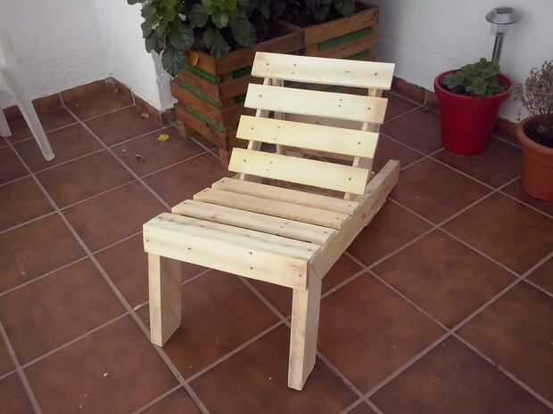 silla de madera hecho de palets con 3 diferentes respaldo posición 90, 75, 65 grados. Fácil y rápido para hacer.