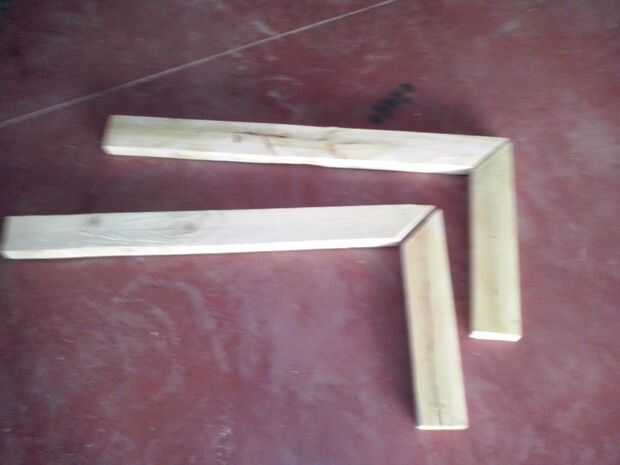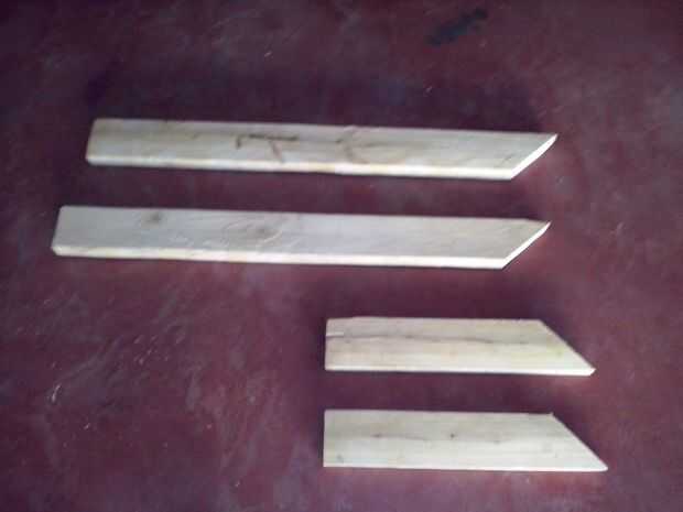uno los cortará en 2 trozos de 30 cm va a cortar la punta en un ángulo de 45 grados y las 2 restantes también