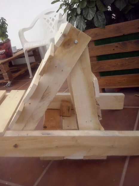 Cortar 3 tablas de 35 cm y 2 tablas de 45cm y se uniría perpendicular como copia de seguridad única estancia hacer agujeros en el soporte superior y el apoyo y unirlos con tornillos y tuercas no son muy fuertes para mover