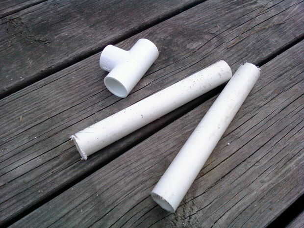 Entonces usando los dos 6,75" piezas que fueron cortadas antes, conectar una Unión en T a cada una de las piezas. luego conecte la pieza de nuevo a los dos restantes puntos showen en la última foto.