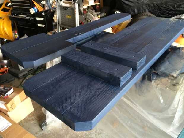 La inspiración para esta silla vino de ver uno en un muelle en el Lago Tahoe. Es grande – dos asientos bastante cómodamente – y altura, con una bonita vista con protección contra balas de cañón y perros mojados.Éste está hecho de madera reciclada de