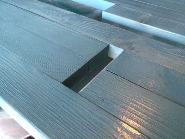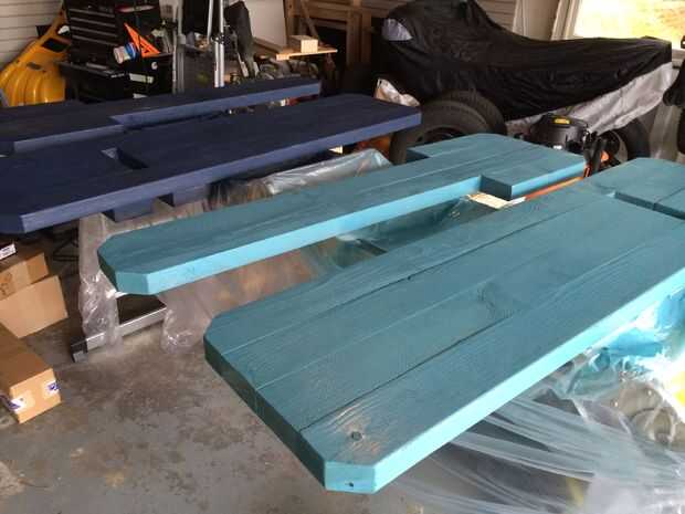 La inspiración para esta silla vino de ver uno en un muelle en el Lago Tahoe. Es grande – dos asientos bastante cómodamente – y altura, con una bonita vista con protección contra balas de cañón y perros mojados.Éste está hecho de madera reciclada de