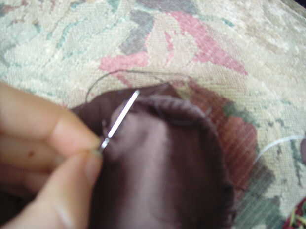 Asegúrese de que usted deje un espacio para que pueda darle la vuelta derecha hacia fuera y llenar con el relleno del bolso de haba. Luego cerrarla muy bien, por lo que es fuerte, esto no es necesario ser prolijo, sólo tiene que ser fuerte.