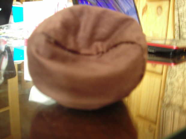 Si usas cuerda entonces debes cortar una hendidura a través a través de la parte superior (el círculo más pequeño), hacer un nudo en el extremo de la cuerda y del hilo de rosca a través de. Luego añadir pegamento caliente alrededor de él para que se queda en su lugar y no debilite la tela. Aplicación de pegamento alrededor de ella no lo mate, ya que es en el interior de la forma.
