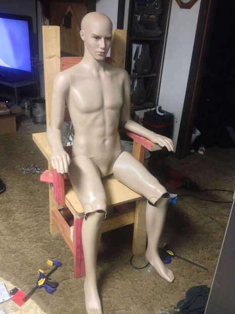 Luego compré a un maniquí de pie de ebay. Es un modelo de cuerpo completo de 6 pies pero no de la curva en cualquier junta para obligarlo a sentarse en la silla que le corte para arriba en cada articulación. Reconstruirlo fue tan simple y todo para arriba en la silla cómo quería entonces con un poco aerosol de espuma para llenar lagunas y fibra de vidrio para mantener todo sólido. Sabiendo lo que sé ahora sin embargo que tuve solo conducto grabado todo con la espuma en aerosol y llamado bueno puesto que las telas cubren todas las uniones de todos modos. Fibra de vidrio no valía la pena el esfuerzo.