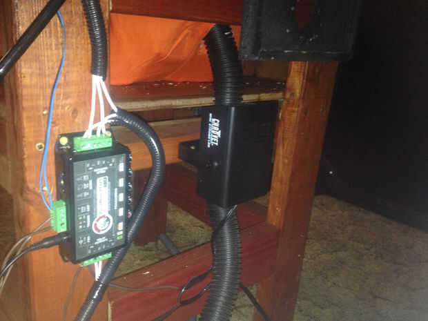 Ahora para que la magia suceda que comencé con un par de actuadores de bloqueo de puertas de coche. Uno empuja el cuerpo hacia fuera y hacia atrás para hacer que se sacuda todo. La segunda utilicé alambre para conectar a la quijada del maniquí para que su cabeza también golpea hacia arriba y abajo por separado del cuerpo. Para el sonido pienso montar un altavoz en la parte trasera de la silla y en la garganta del maniquí para que sus gritos suenan como vienen directamente de él. Con todo esto montado fuera de la vista que le puse una luz dirigida hacia arriba detrás de él ya que él estará sentado en una esquina cuando showtime comienza y la manguera proveniente de la niebla máquina se desliza en el mono a su regreso para la niebla justo fuera de su ropa que le parece como si él está fumando. Todo esto es controlado por un canal 4 picaboo más controlador. Con todo lo que hecho es tiempo para trabajar en cómo se activará el controlador.