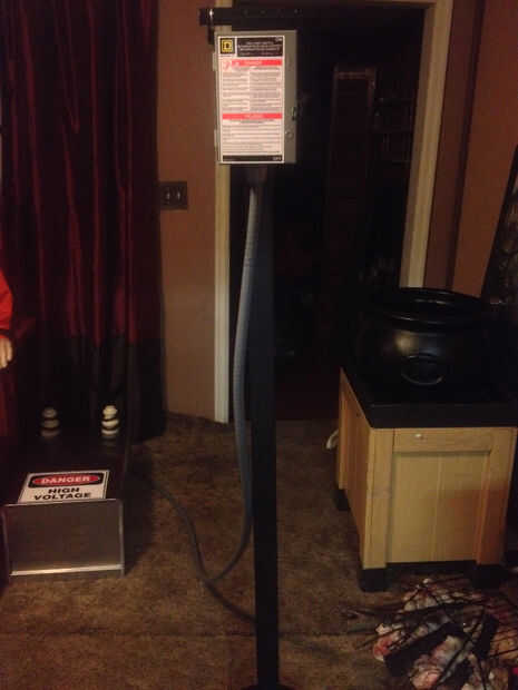 Para el gatillo que quería hacer algo interesante que pensaba y no había visto antes de mí mismo. Puesto que este apoyo se dará a conocer en una fiesta de Halloween antes de Halloween, no quiero que se puede activar utilizando medios normales como sensores de movimiento o almohadillas de presión. Pensé que sería genial si los asistentes al partido y truco o tratamiento fueron capaces de freír al interno de deathrow ellos mismos convirtiéndose en el verdugo. Para que esto suceda compró una caja de fusibles pequeños con un interruptor de corte y cableado hasta el controlador como el gatillo real. Tuve que añadir un resorte bastante fuerte dentro de la caja conectado al interruptor para que se desengancha automáticamente el interruptor después del contacto inicial a partir de la acción. Con el trabajo con éxito todo lo que tenía que hacer era hacer un soporte para ella. También corrí el cable de disparo a través de algún conducto grande llevando en la caja del transformador para que se vea un poco más aterrador.