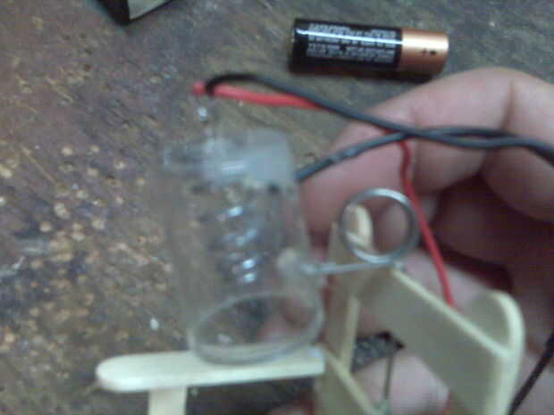 Una vez todo montado, inserte el extremo positivo de la batería en el casco, y soporte el extremo negativo de la placa metálica, el diodo emisor de luz debe iluminar, si no, compruebe el cableado y especialmente Verifique si se toca ninguna parte metálica en su ladrón de joule. Si funciona, entonces Felicidades, ahora podrás ver que tus pilas freír!