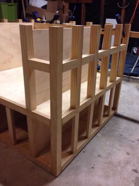 almacenamiento underbed mediante Estanterías Expedit de Ikeaque he creado. Este es un proyecto super fácil con ningún corte necesario. Y sorprendentemente, la cama es totalmente estable. Puesto que ya tenía una cama y marco, cuesta cerca de $400.Piez