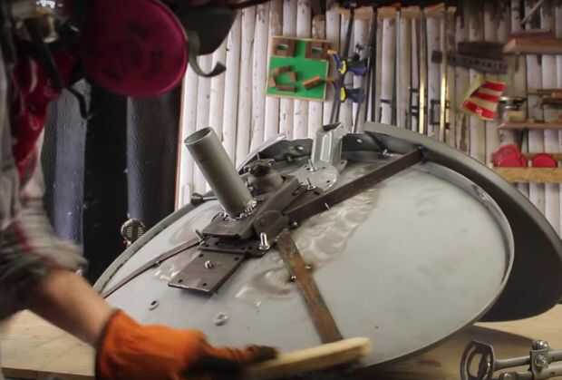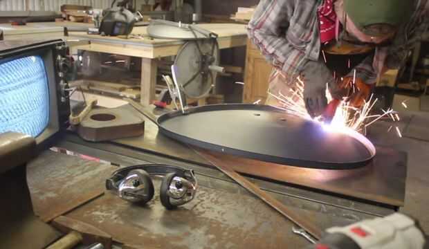 Una vez que la parte inferior y trasera rugosa, volví y que sea lo suficientemente fuerte para sostenerme. Usé algunos chatarra acero plano para añadir un pequeño soporte. También me di cuenta de que quería el apoyo para la cabeza y cortar el plato superior para caber sobre el plato trasero sin superposición. El hardware ajustable que vino con el plato era para ayudarme a Alinee y el reposacabezas de la ayuda. Una vez que se bosquejó hacia fuera y corte, soldada a la parte posterior.