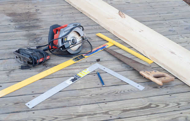 Se necesita un tablero de 12 pulgadas de ancho y 8 pies de largo. Lo siento mis amigos métricas. Esto es todo en pies y pulgadas. Esto me costó $8 en la tienda hogar de caja grande.