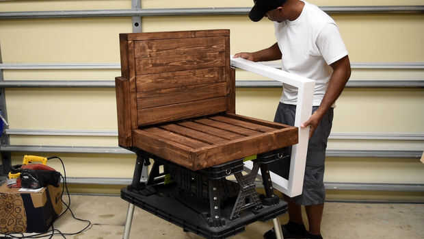 esta mesa escritorio o almacenamiento de información de niños y sillas es simple de hacer y parece impresionante una vez pintada con Rust-Oleum en tonos azules. La tapa de la mesa se levanta y ofrece un agradable espacio para juguetes o artesanía y s