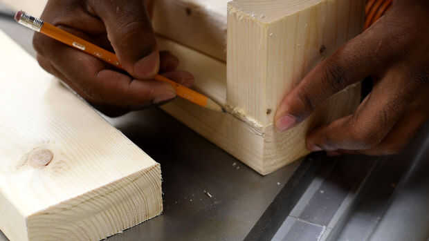 Para la construcción de los dos brazos, muescas en una sección en el 2 por 4. Esto se hace solamente para la parte superior e inferior. Se refieren a la pieza de madera de 30 pulgadas. La sección ranurada hacia fuera asentará el pedazo de 24 pulgadas de madera, que es la parte delantera y trasera.