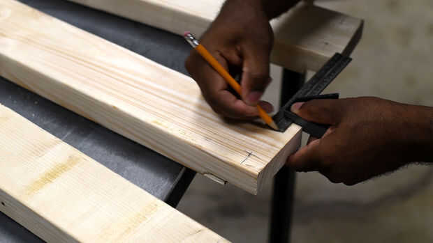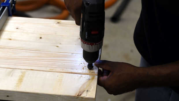 En el lado opuesto de la muesca sección Marque dos orificios para el tornillo. Para ello en ambos extremos de todas las 30 pulgadas 2 por 4.