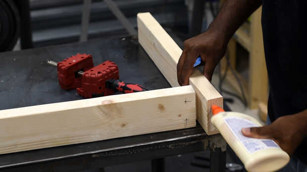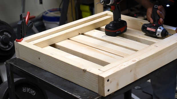 Montar el asiento con tornillos y pegamento. RIP 2 por 4 en la mitad que se ajuste en la estructura del asiento. Se utilizarán los insertos de asiento inferior de apoyo. Ver medidas abajo. No coloque los insertos de la mediados en este punto.