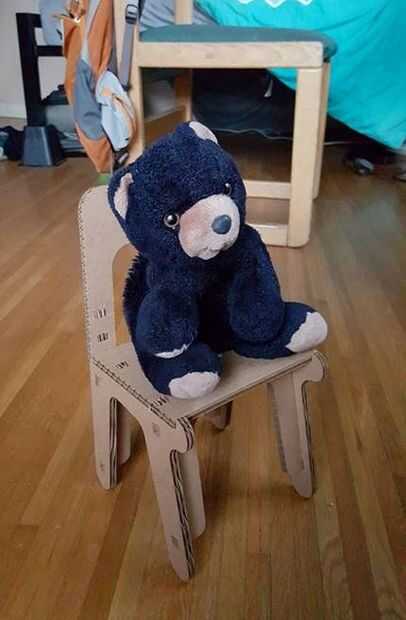 Esta silla fue diseñada para ser corte del laser. Idealmente la madera contrachapada o cartón se utilizaría, como estos materiales deben ser fácilmente disponibles en una Universidad.