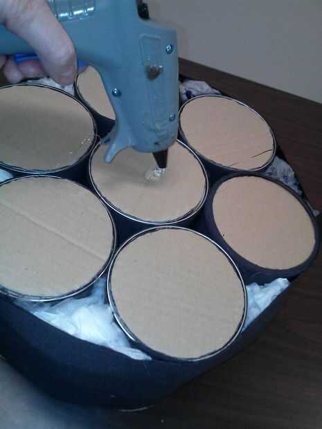Tomar el pedazo restante de cartón y se alinean encima de heces. Usar una pistola de pegamento, pegamento en su lugar.