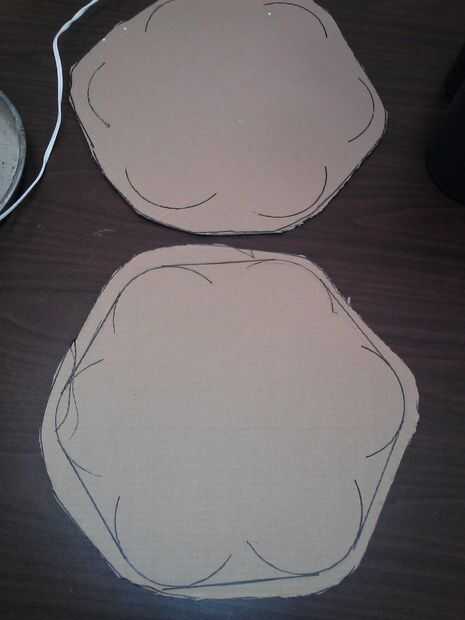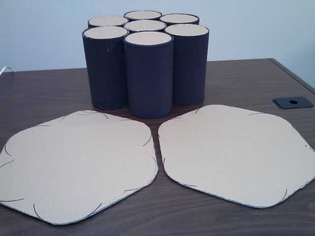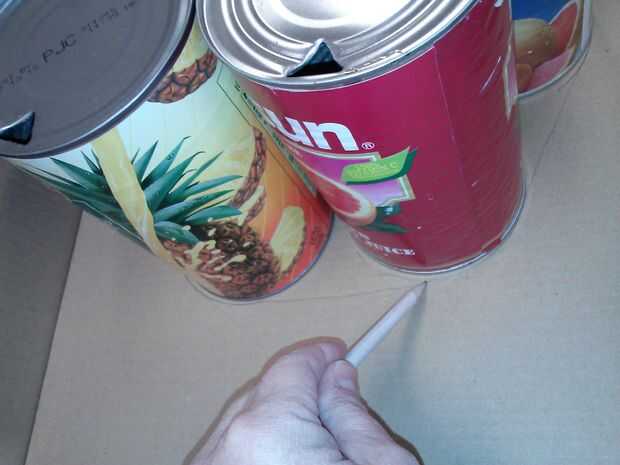 Coloque la unidad en forma de flor sobre un pedazo de cartón y traza alrededor de él. Utilizando una regla o escuadra otra, conectan el redondeado "pétalos". Se trata de una pieza cara 6 de cartón. Cortar uno para la parte superior de latas y otro para la parte inferior de las latas.