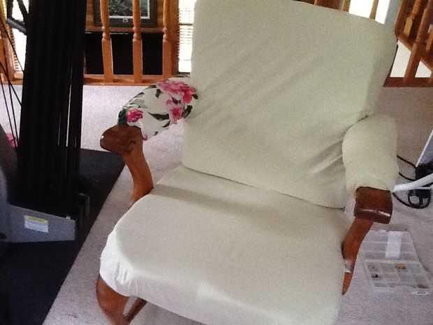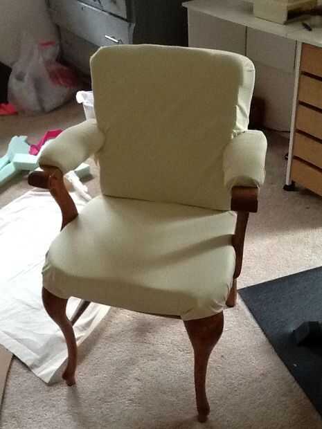 mi hija regresó de la Universidad para el verano y quería un Sillón tapizado para su dormitorio. Ya que, como ya he mencionado, tengo un niño en la Universidad, comprar un sillón nuevo no estaba en el presupuesto. Ni estaba loco por comprar muebles usado tejido cubierto debido a los olores del animal doméstico de chinches, humo, etc.. Así que miré alrededor de la casa para ver lo que pude llegar a.