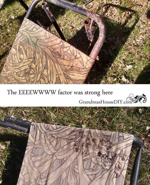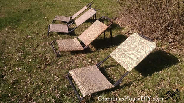 Nuestro antiguo granero se convirtió en vertedero de un pariente durante muchos años (décadas atrás) por lo que Joe y heredó algunas sobras muy extrañas. Ropa de caza especialmente antiguo y qué no. Y tú me conoces, estoy tratando de encontrar proyectos y usabilidad donde puedo! Estas sillas mi padre proclamó ser sillas viejas de la caza de ganso que vinieron una vez con un ciego encima de ellos. Asentí pensando, bueno, eso es genial pero ahora son míos! Mahahahahaha! No sé ustedes, pero mi idea de lo perfecto sería un lugar en el sol después de un par de horas, buena compañía (o simplemente me iría bien también...) y una botella de vino. Había estado trabajando en tumbonas en mi cabeza durante meses cuando había topado con estos ganso viejo caza sillas e inmediatamente, me emocioné! Les tiré fuera el granero del sábado por la mañana y me puse a trabajar.