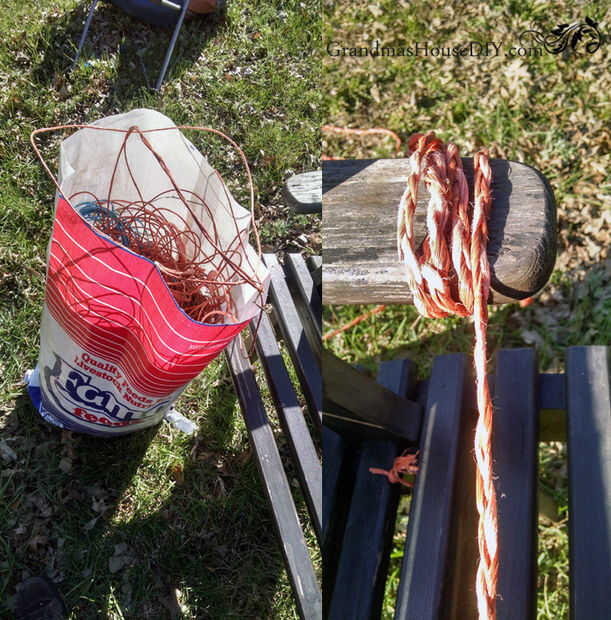 Realmente se ven mejores en las fotos y luego que. (Apestoso y oh tan desagradable.) Por un momento tuve el pensamiento que realmente solo debo probar y guardar la tela vieja y cubierta sólo con las cosas nuevas tenía en mente. Que probablemente debo han intentado hacer de verdad... Habría salvado yo tantas horas de infierno y dolor. Estas tumbonas fueron de lo que debería haber sido un proyecto de 2 horas a un proyecto de 7 horas y estoy tan enojado con mí mismo. La noche antes de abordaron los marcos sacó de nuestra bolsa de enfardar cordeles de la granja (a la izquierda de las balas de heno que alimenta nuestros caballos este invierno) y trenzado para atar la tela en la espalda, había imaginado la fabricto del cordón las tumbonas como un corsé, el trenzado me tomó aproximadamente dos horas y esto (en el mismo principio) es donde la pérdida de tiempo comenzó....