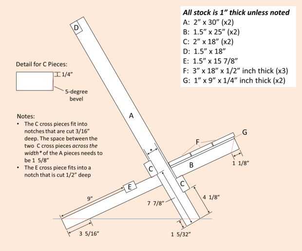 La imagen de arriba es una versión digitalizada de mi plan finalizado y contiene casi todos los detalles necesarios para completar los marcos de madera de una silla. Sin embargo, he cubierto el proceso de construcción toda en lo que viene.