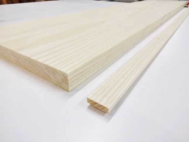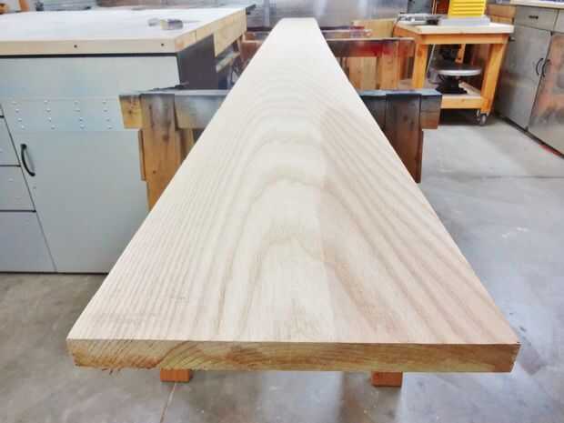 La compré fue 1" de espesor y 11" de ancho y fue elegido porque era especialmente plana y recta y lo suficientemente amplia como para exprimir una silla completa de una sección de cuatro pies de la Junta.