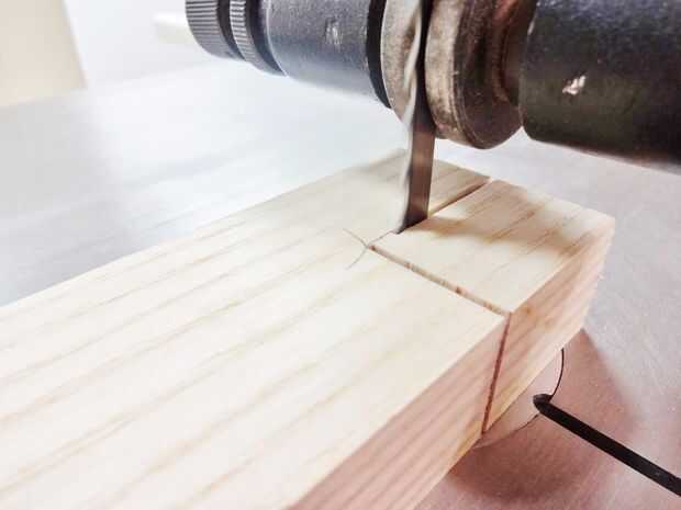 La C travesaños tienen un ligero bisel corte en los bordes donde descansan las piernas de asiento. Estos biseles se cortan con la Sierra de mesa.