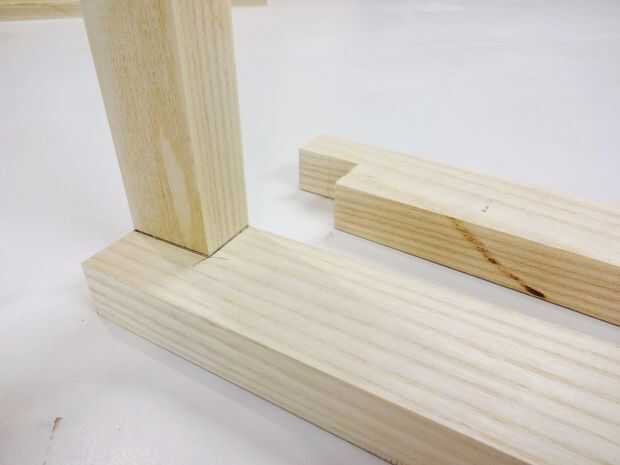 Las muescas se cortaron con sierras según las medidas del apareamiento cruzado piezas y situada como se indica en el plan.