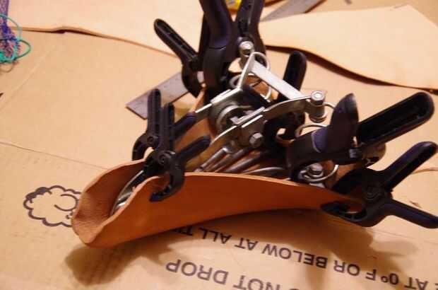 Las abrazaderas pueden marcar el cuero, a veces para siempre. Usando más, las pinzas más pequeñas, más débiles ayuda a evitar esto. Puede que desee mantener el cuero en la pulgada extra que mantiene.