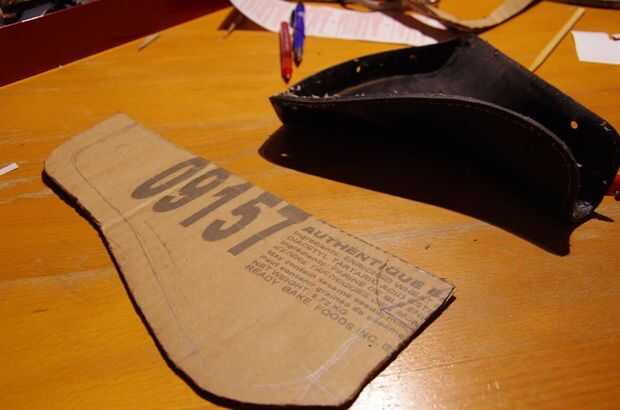 Sin embargo, si deja a mucho cuero, la formación sea más difícil, porque el material adicional se arruga/onda... Si esto sucede, eliminará algún material durante la formación. - Informe el contorno en la piel y cortar la forma.