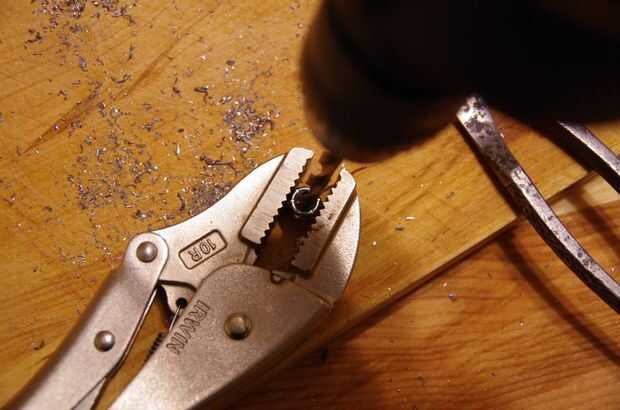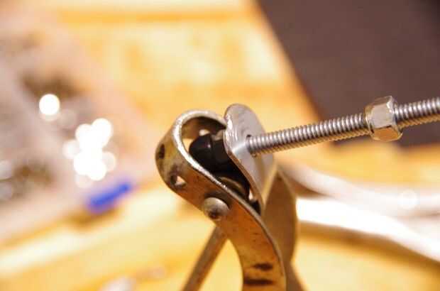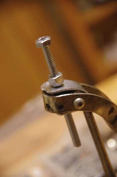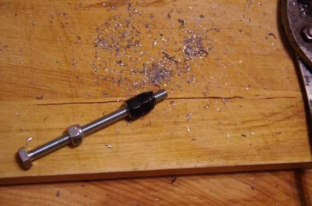 -uno a cada lado y uno encima de uno del perno de tensión. - Tuercas de taladro dos o tres (a un diámetro más grande) que sirven como arandelas gruesas, ya que me imaginé podrían ser útiles disponer de alguna manera para mejor fijar el perno de tensión (el perno). (Foto 5-7)