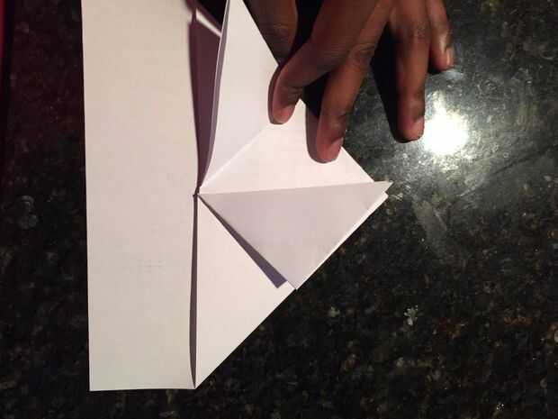 después de comprobar cuidadosamente que usted tiene un pedazo de trabajo sostenible de papel que usted puede seguir rasgaduras o pliegues equivocados no proceden a empujar en dos pliegues donde la línea horizontal corta a través el X donde deberás acabar con un triángulo apuntando sobre un bloque rectangular sin tocar en la parte inferior. Tomar el pliegue superior derecho pieza doble en una forma donde se une el extremo derecho en la parte superior del triángulo puntiagudo, hacer lo mismo con el doblez superior terminado izquierdo para crear un diamante en forma de pinzas que tienen una línea abierta por la mitad. Ahora finalmente tocar por primera vez el bloque rectangular doble el extremo derecho de la pieza a la nota media, que el diamante con línea abierta a través de ella no debe ser tocado en este paso, pero alineados en la parte inferior derecha de línea a la pieza recién doblada Repita el paso del mismo modo en el lado izquierdo donde debe terminar con una casa de alto una vez que usted voltea el pedazo de papel al otro lado. Es crucial que los dobleces estén alineados correctamente y cuidadosamente para no crear pliegues y ubicaciones caóticas del cojinete.