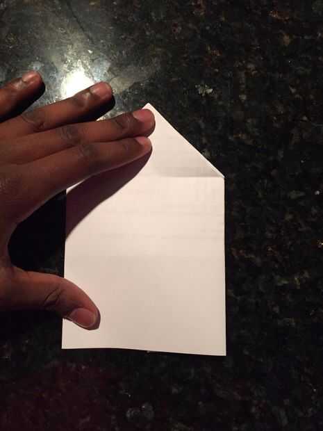 Tome la parte inferior del rectángulo doblado y se encuentran en el centro de donde el triángulo apunta hacia abajo. Llegan a la punta derecha de la Plaza de derecho que crea el derecho de la mitad de la tapa del rectángulo dentro de la pieza de triángulo medio esto debe repetirse en el lado izquierdo donde va a crear dos grandes triángulos hacia abajo uno doblado con una línea media a través de él y todo el en el centro.