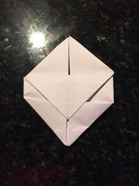 las pinzas de diamante con la línea abierta por crea su propio Triángulo apuntando hacia arriba. Si ha pegado a mi hasta ahora por favor dése una palmadita en la espalda para tales habilidades de gran intuición viendo cómo mis instrucciones pueden ser un poco desordenados recrear como imaginación en la cabeza. Por suerte llegamos a los más importantes dos pliegues de la pieza de instrucción donde es realmente el factor decisivo en si la pieza se verá como un corazón o más como las alas de jet.