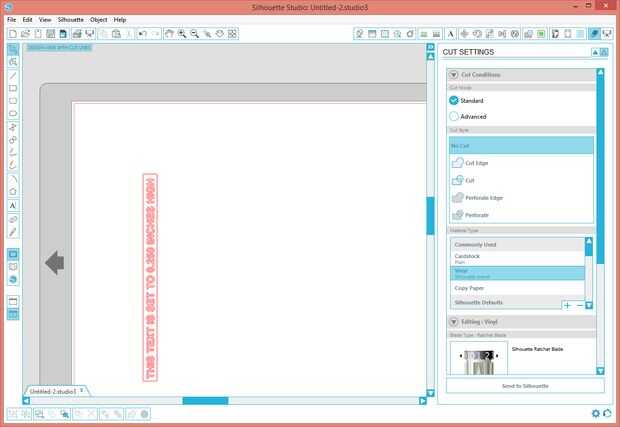 Cortar un vinilo a la medida (dése vinilo extra alrededor del diseño) y cargue la máquina como se muestra en el Instructable se hace referencia. Establecer el cuchillo hasta la mitad entre 0 y 1. Con el vinilo estaba usando, ajuste la cuchilla 1 recogido un montón de cartas. El corte menor es menos probable que recoger las letras. Sin embargo, 0 no cortó lo suficientemente profundo. Encontré que es posible establecer el cuchillo entre los números. El plotter trabaja como un campeón con el cuchillo entre 0 y 1.