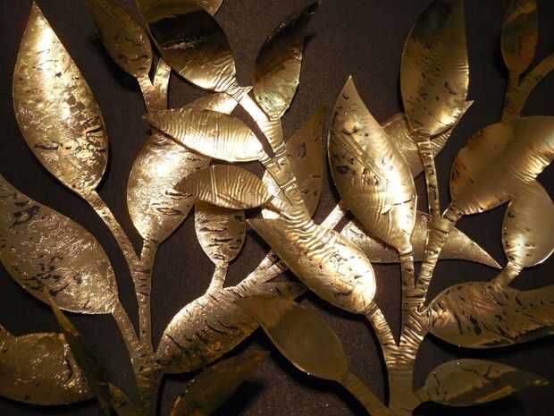Tomé una cadena de oro viejo, colocada alrededor del cuello del maniquí y ajustar la longitud correcta, 5 racimos de hojas sería suficiente para rellenar el área. Las hojas son largas de 6" y 6" de ancho, la laminación suave les permite rizar como queremos.