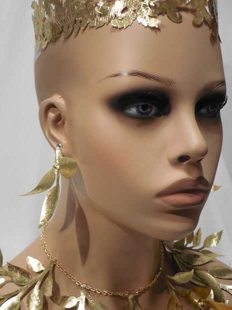 Ahora las 3 secciones son juntos, que usted puede Agregar todos los toques que te gusta. Este es solo simple, un poco rhinestone en el frente y una cadena envuelta alrededor de los bordes. Hacer unos pendientes para emparejar, de recortes de hojas añadir una pequeña joya. Conjunto completo.