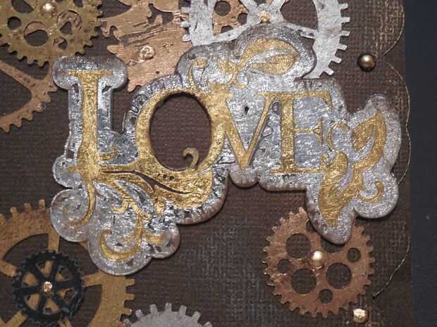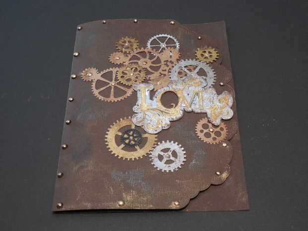 Ahora encontrara en papel de algunas formas de engranaje, añadir un poco de antigüedades y fije a una bonita tarjeta y un Steampunk ama en marcha, tarjeta de San Valentín.
