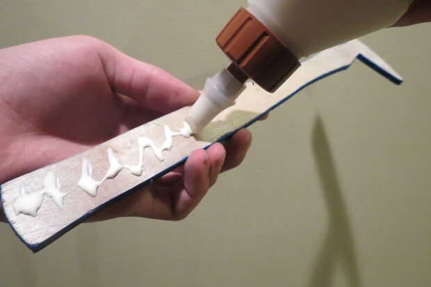 Pegado de madera a plástico-como la melamina puede ser complicado, pero encontré que el pegamento de madera gorila hace un gran trabajo (no un patrocinador). Asegúrese de que extender la cola uniformemente y poner algo de peso sobre las piezas mientras seca. Dejarlos reposar al menos una noche.
